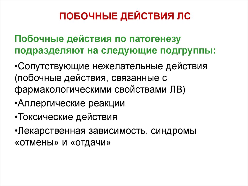 ПОБОЧНЫЕ ДЕЙСТВИЯ ЛСПобочные действия по патогенезу