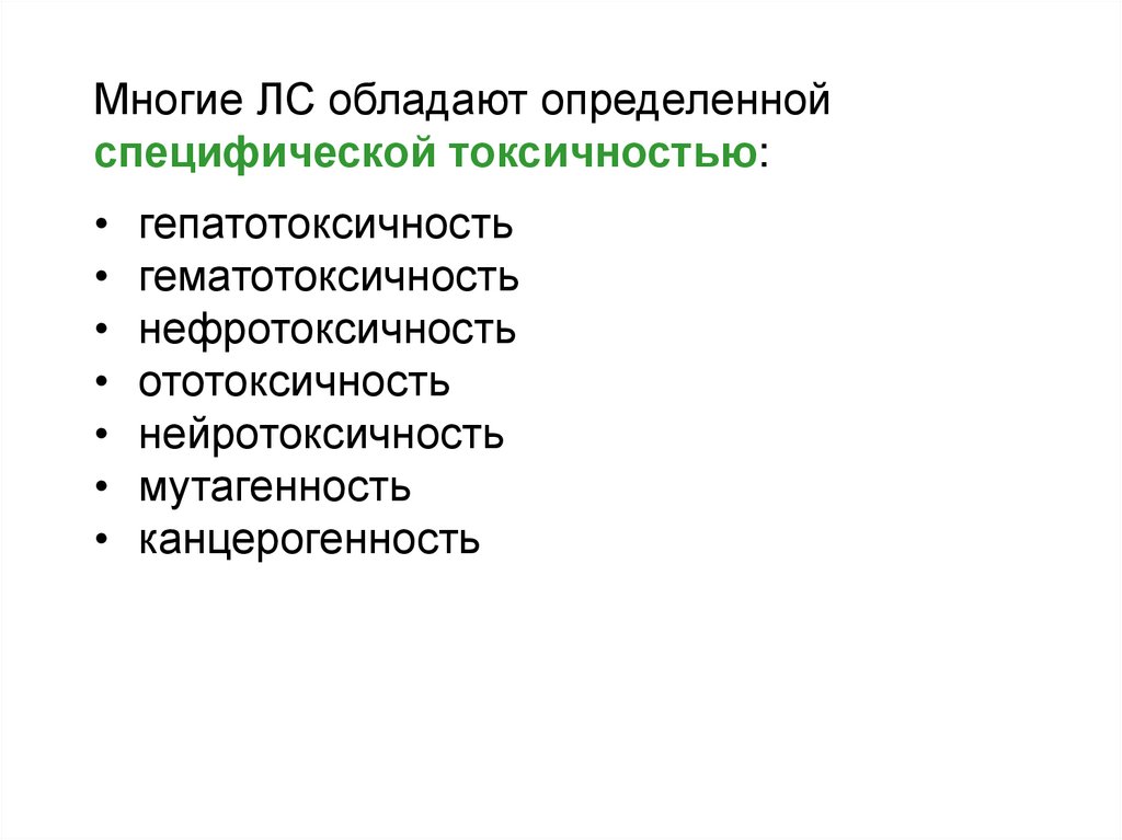 Многие ЛС обладают определеннойспецифической токсичностью: