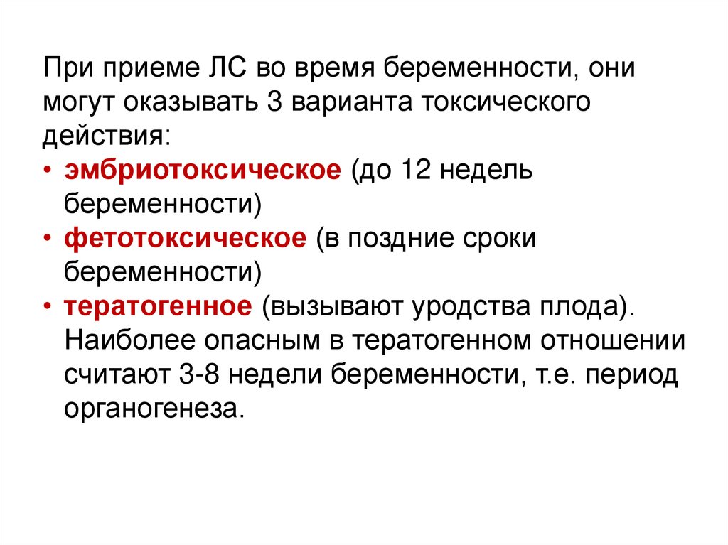 При приеме ЛС во время беременности, онимогут оказывать 3 варианта токсического