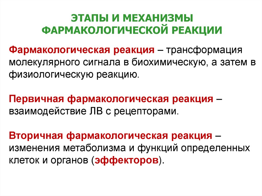 ЭТАПЫ И МЕХАНИЗМЫФАРМАКОЛОГИЧЕСКОЙ РЕАКЦИИ