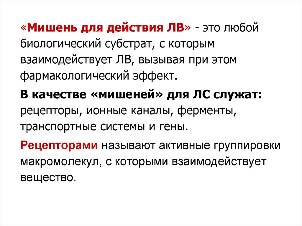 «Мишень для действия ЛВ» - это любойбиологический субстрат, с которым