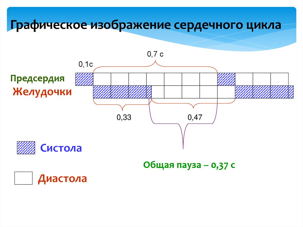 При ЧСС 75 в минуту составляет:Систола - 0,1с