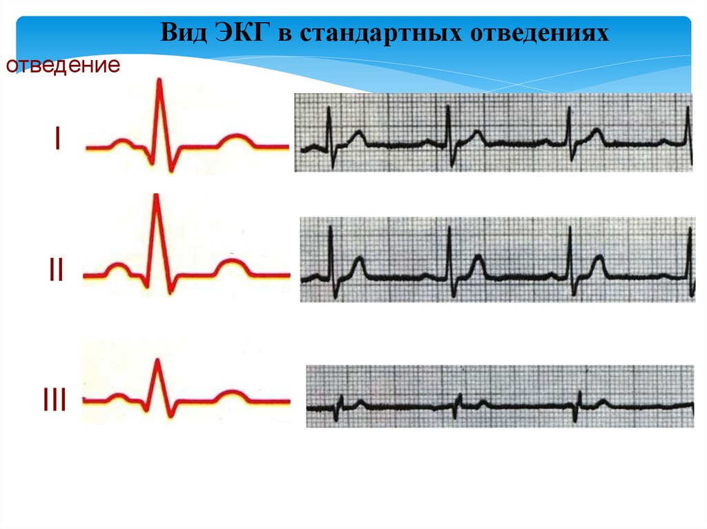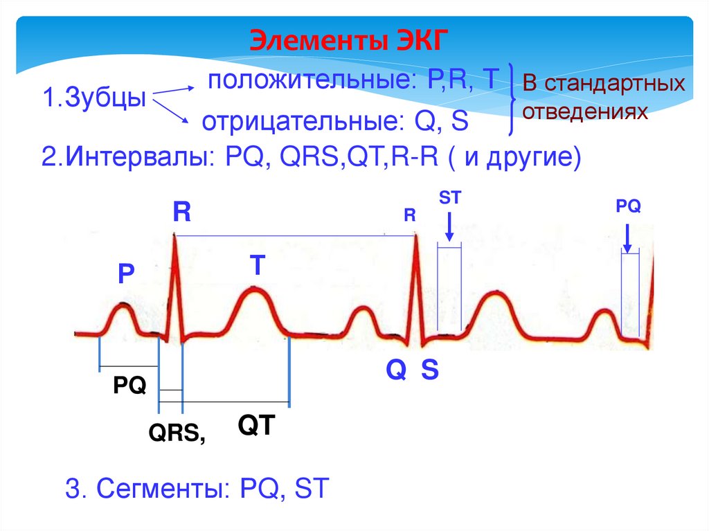 Элементы ЭКГположительные: Р,R, Т В стандартных