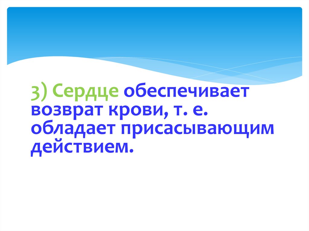 3) Сердце обеспечиваетвозврат крови, т. е.
