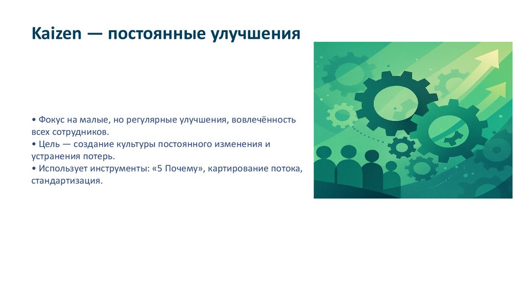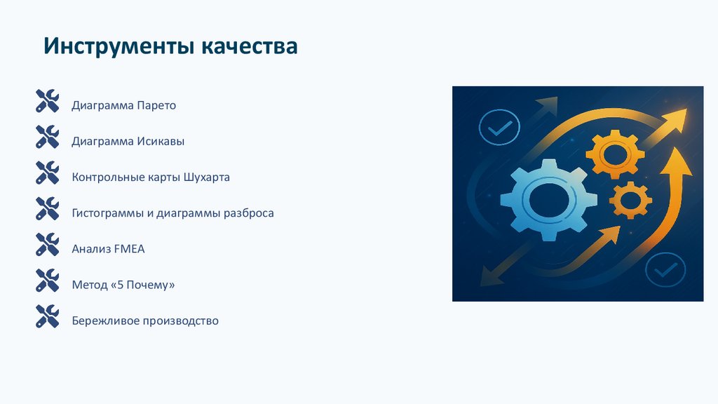 • Применение инструментов (PDCA, TQM, Lean, Kaizen, 5S)