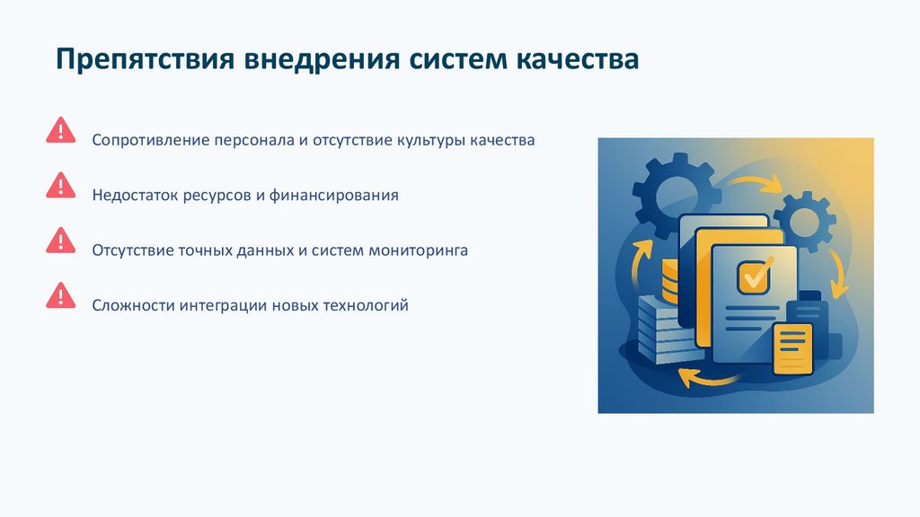 Препятствия внедрения систем качестваСопротивление персонала и отсутствие культуры качества