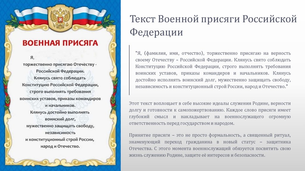Военной присяги, и поймем её глубокое значение для каждого военнослужащего. Этот материал крайне важен для