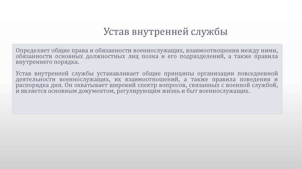 Устав внутренней службы устанавливает общие принципы организации повседневной