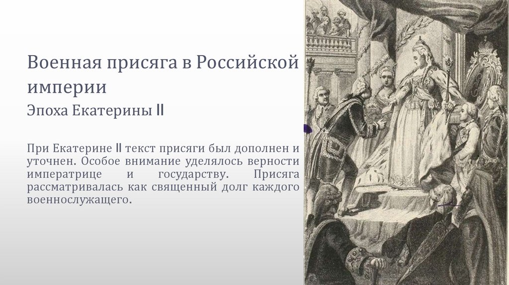 При Екатерине II текст присяги был дополнен и
