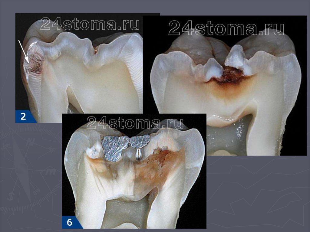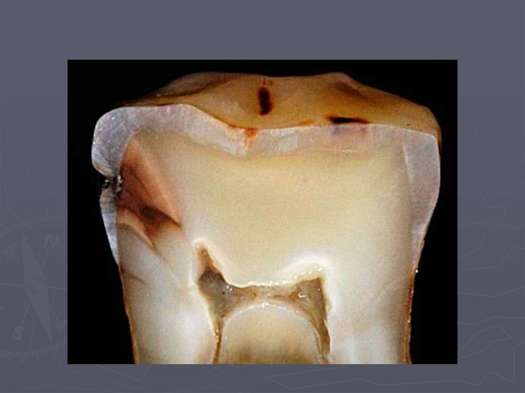 ► во временных зубах течение кариеса более быстрое,чем в постоянных;