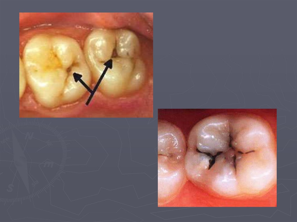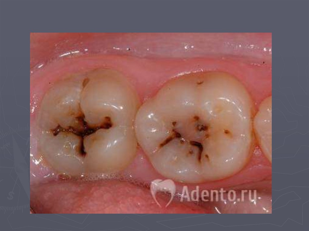 При клиническом осмотре выявляются:► кариозные полости по глубине мелкие;