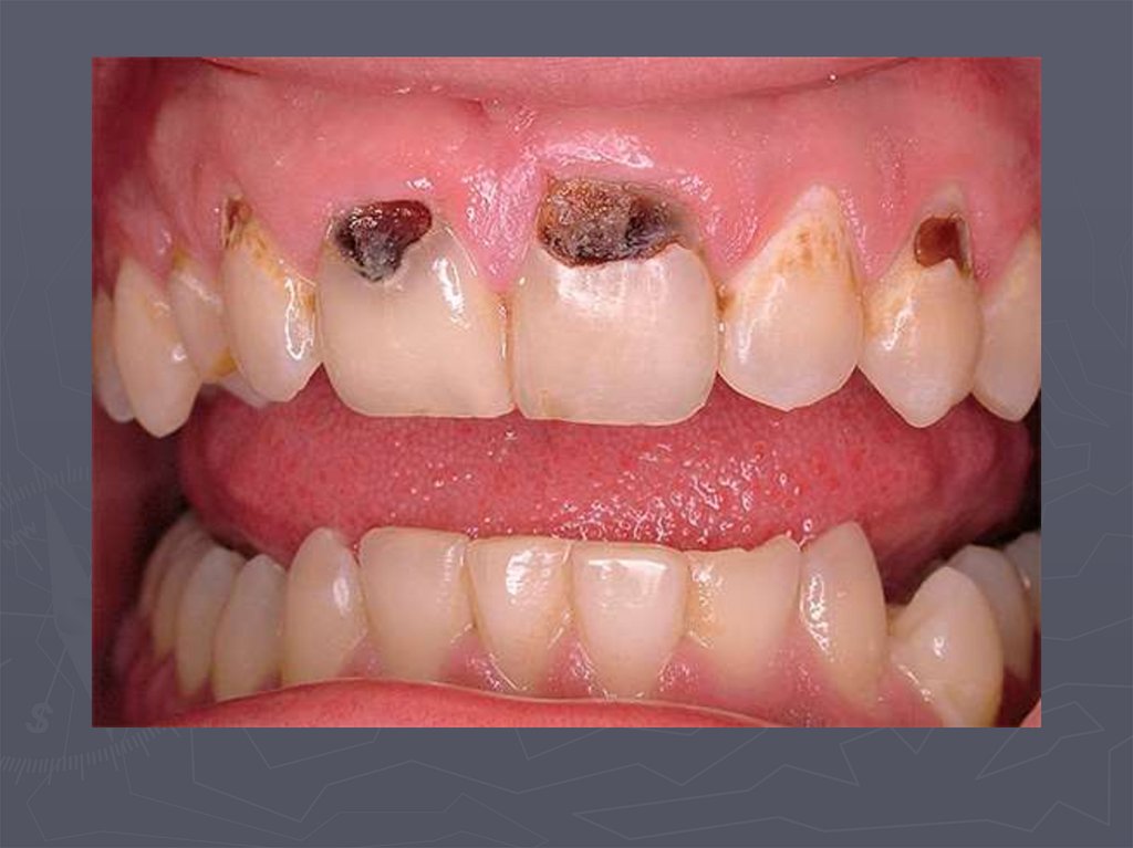 При декомпенсированной форме кариеса:► индекс кп, КПУ, кп+КПУ до 7 и более;