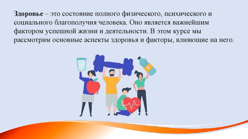 Здоровье – это состояние полного физического, психического исоциального благополучия человека. Оно является важнейшим