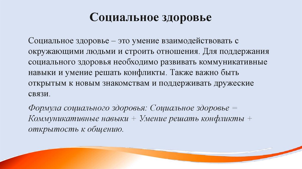 Социальное здоровьеСоциальное здоровье – это умение взаимодействовать с