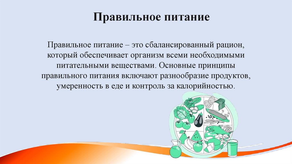 Правильное питаниеПравильное питание – это сбалансированный рацион,