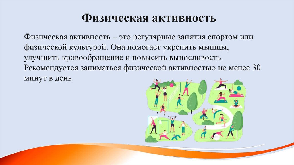 Физическая активностьФизическая активность – это регулярные занятия спортом или
