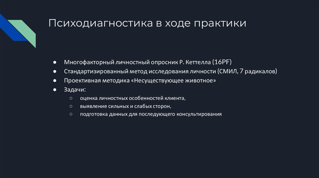 Психодиагностика в ходе практикиМногофакторный личностный опросник Р. Кеттелла (16PF)