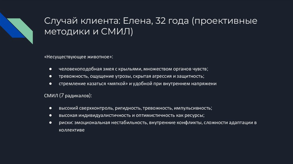 Случай клиента: Елена, 32 года (проективныеметодики и СМИЛ)
