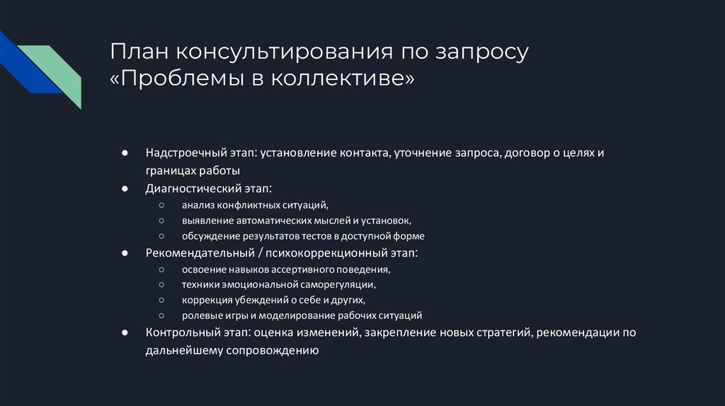 Контрольный этап: оценка изменений, закрепление новых стратегий, рекомендации по