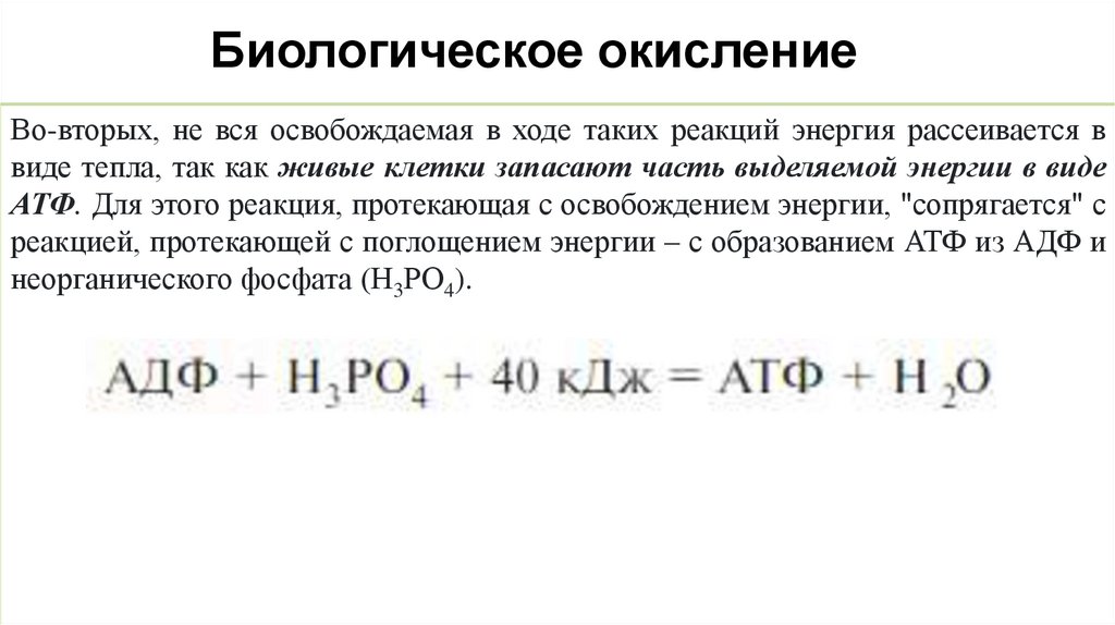 Биологическое окислениеВо-вторых, не вся освобождаемая в ходе таких реакций энергия рассеивается в