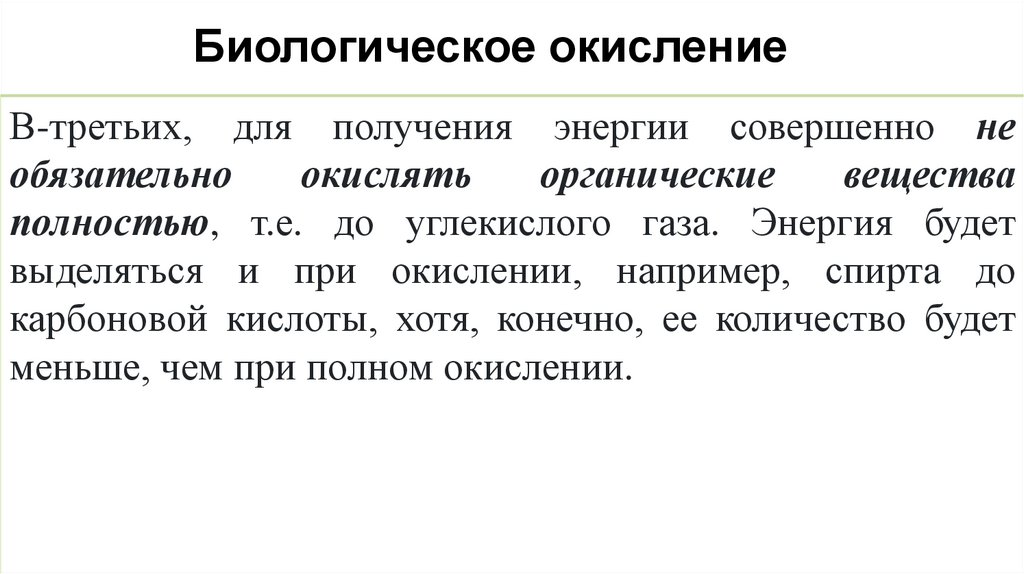 Биологическое окислениеВ-третьих, для получения энергии совершенно не