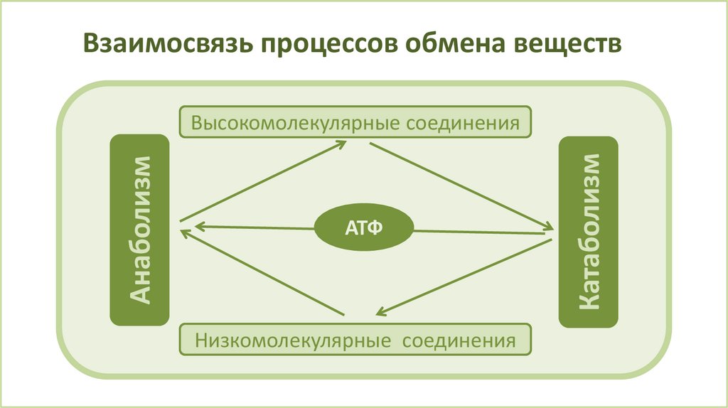 Взаимосвязь процессов обмена веществАТФ