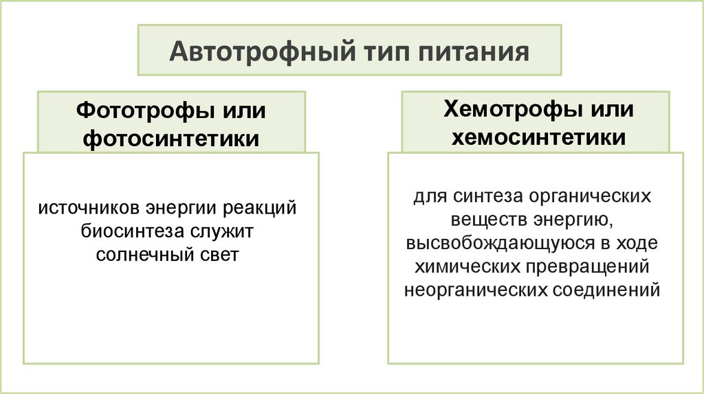 Автотрофный тип питанияФототрофы или