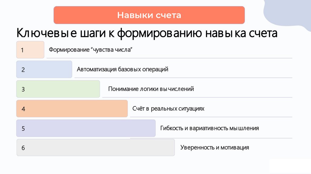 Навыки счетаКлючевы е шаги к формированию навы ка счета