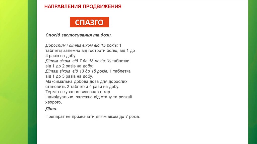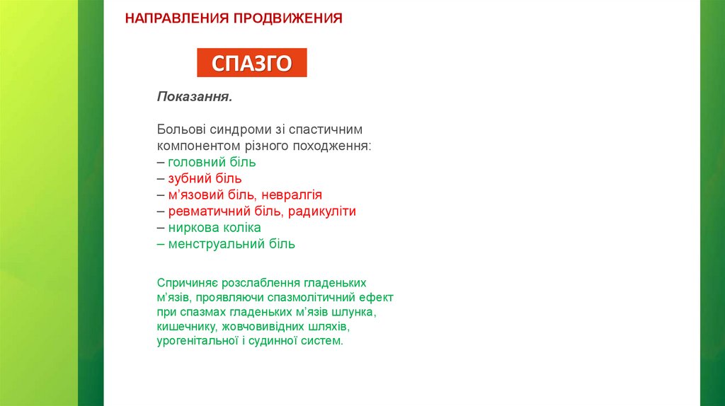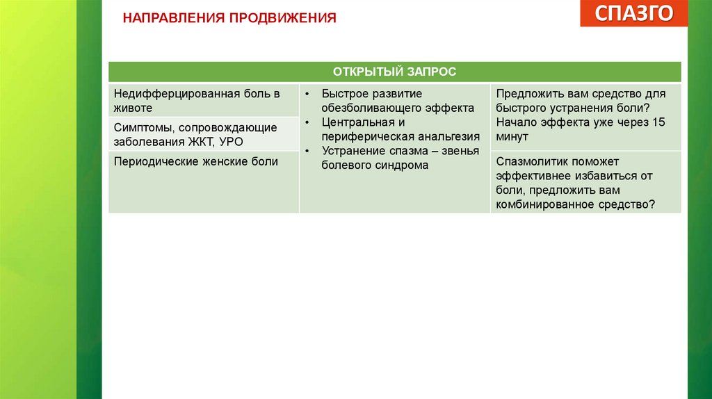 НАПРАВЛЕНИЯ ПРОДВИЖЕНИЯСПАЗГО