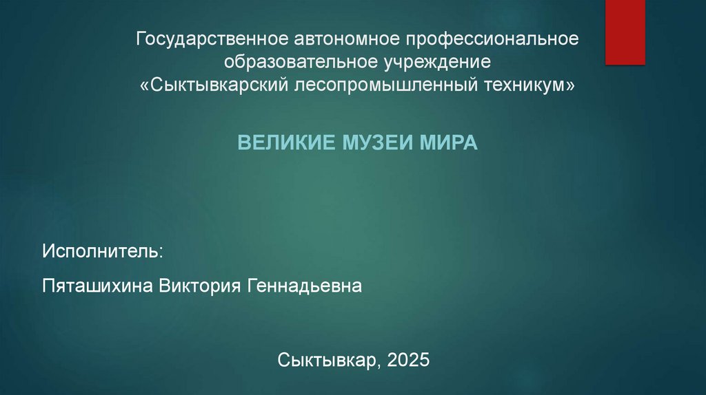 1. Государственное автономное профессиональное образовательное учреждение «Сыктывкарский лесопромышленный техникум»