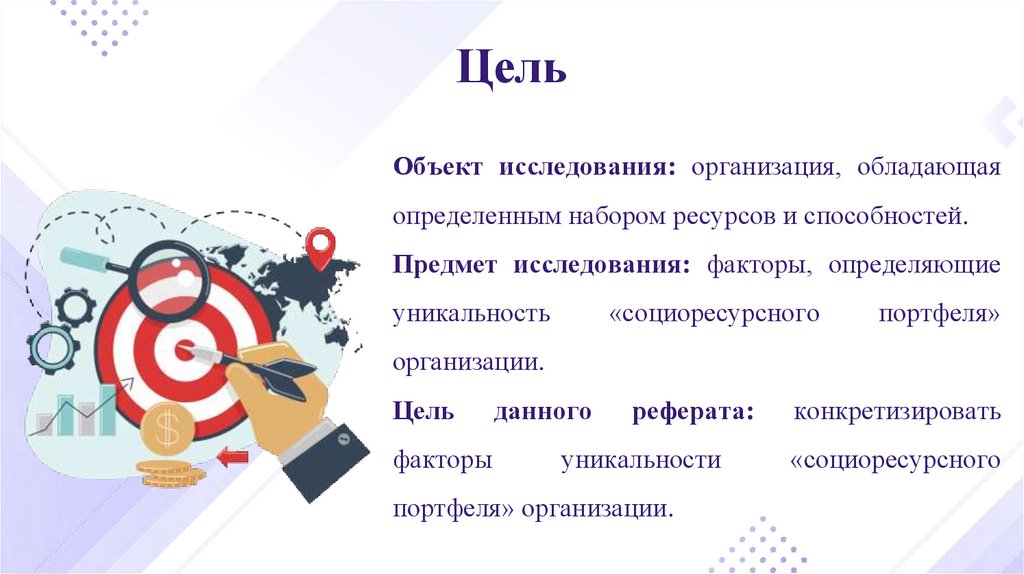Социоресурсный портфель — это органическая целостная совокупностьсоциальных ресурсов организации, представленных в качестве средств