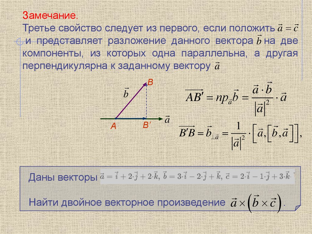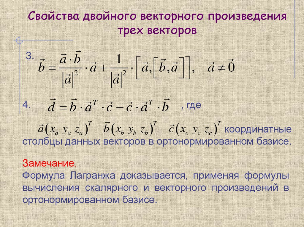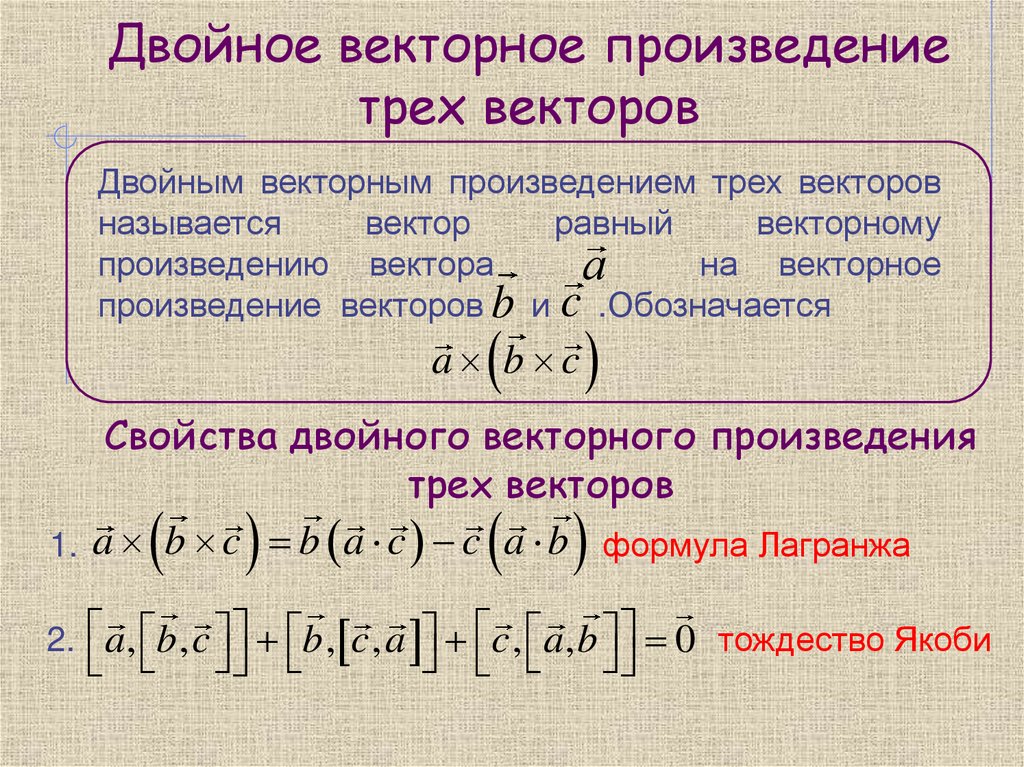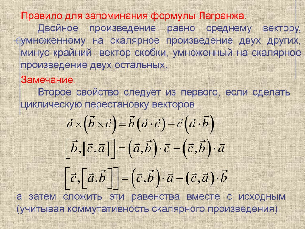 Правило для запоминания формулы Лагранжа.Двойное произведение равно среднему вектору,