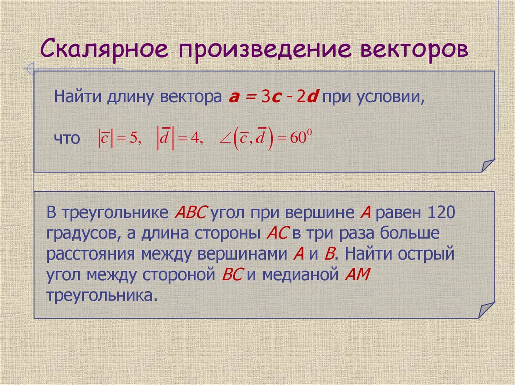 Скалярное произведение векторовНайти длину вектора а = 3с - 2d при условии,