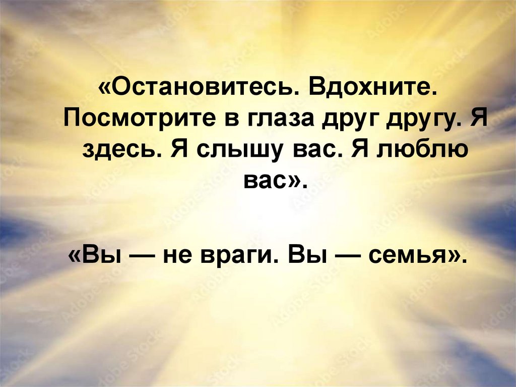 «Остановитесь. Вдохните.Посмотрите в глаза друг другу. Я