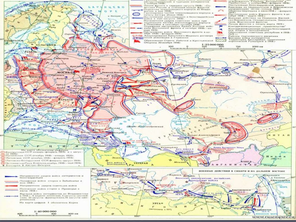 ► Восточный (Сибирь, Урал, ДальнийВосток) – военные действия с июнь 1918январь 1920 гг.