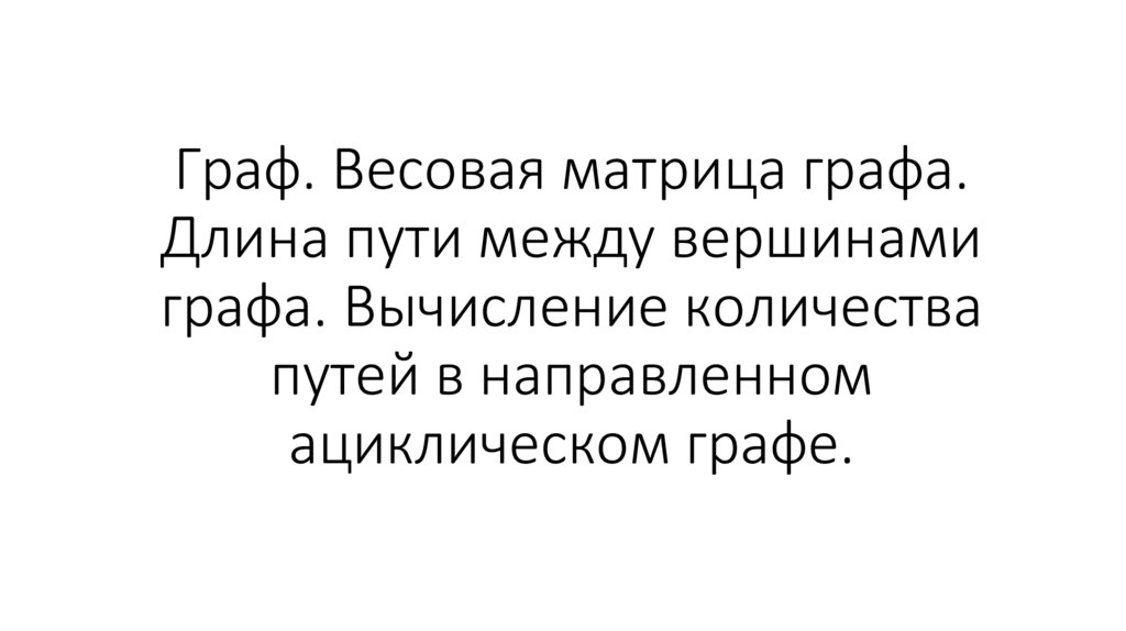 1. Граф. Весовая матрица графа. Длина пути между вершинами графа. Вычисление количества путей в направленном ациклическом графе.
