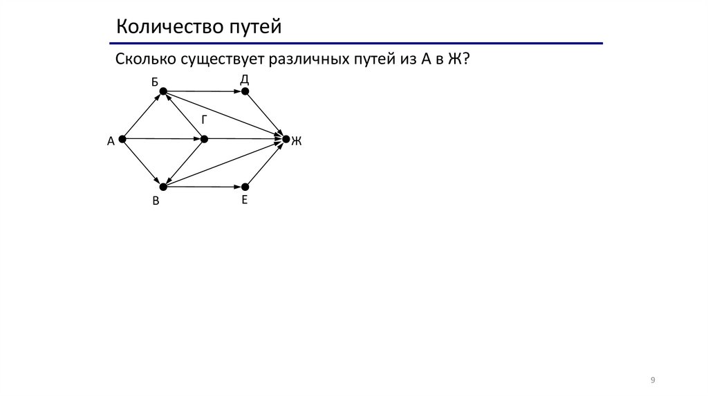 Количество путейСколько существует различных путей из А в Ж?