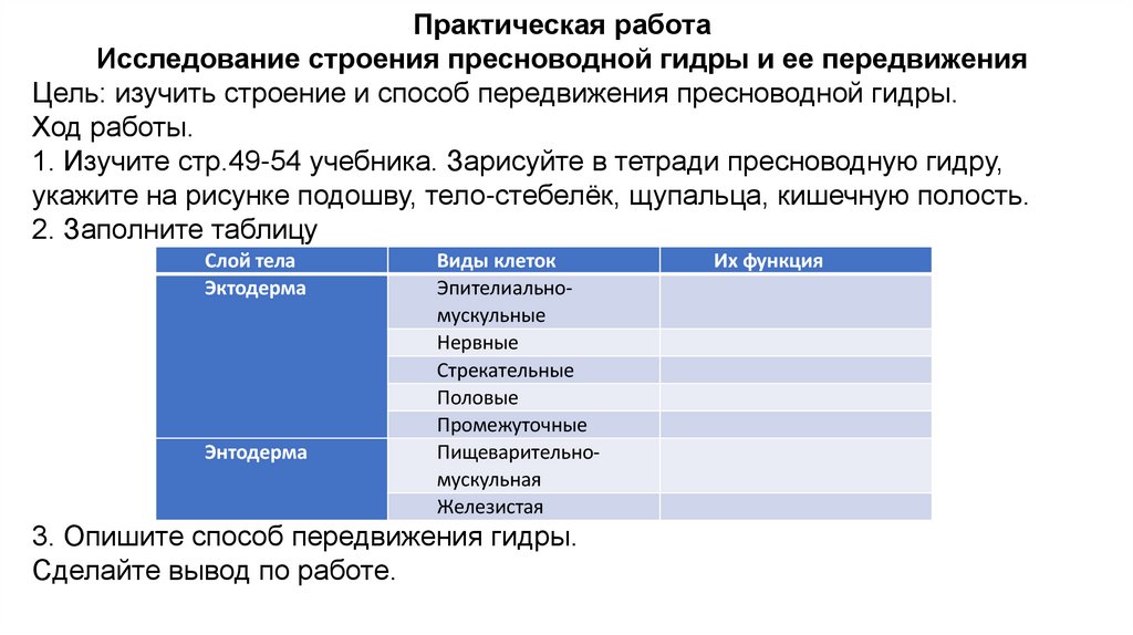 Практическая работаИсследование строения пресноводной гидры и ее передвижения