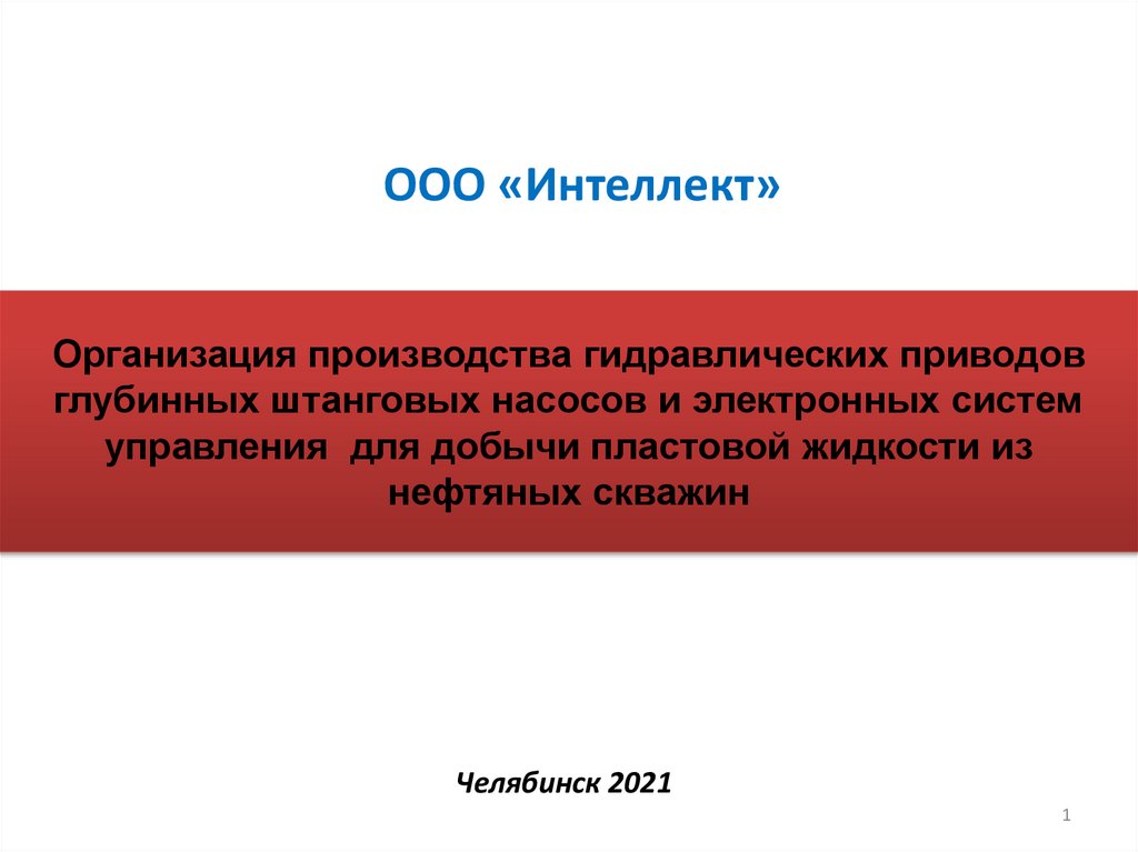 1. Организация производства гидравлических приводов глубинных штанговых насосов и электронных систем управления для добычи