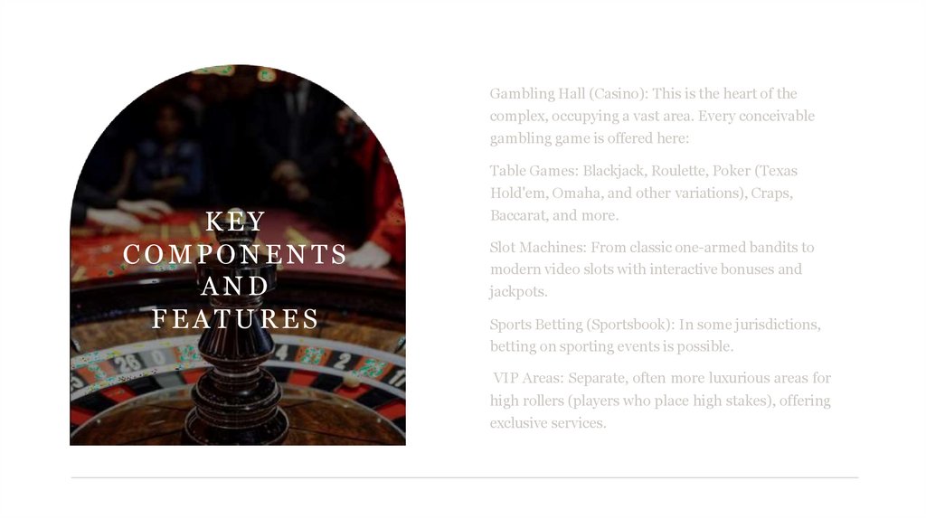 Gambling Hall (Casino): This is the heart of thecomplex, occupying a vast area. Every conceivable