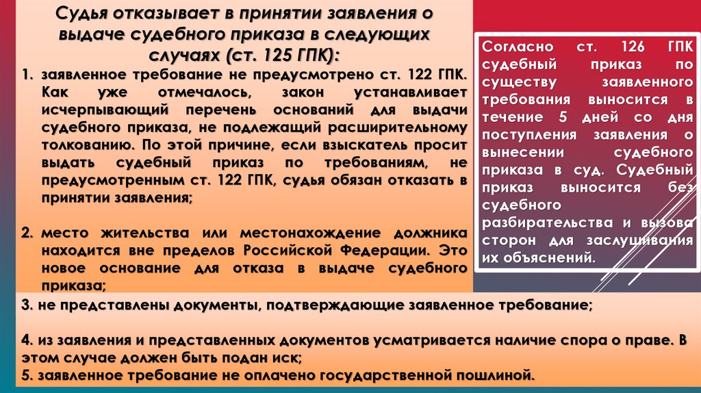 предусмотренным ст. 122 ГПК, судья обязан отказать в