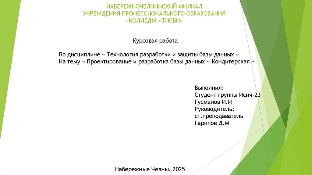 1. НАБЕРЕЖНОЧЕЛНИНСКИЙ ФИЛИАЛ УЧРЕЖДЕНИЯ ПРОФЕССИОНАЛЬНОГО ОБРАЗОВАНИЯ «КОЛЛЕДЖ «ТИСБИ»