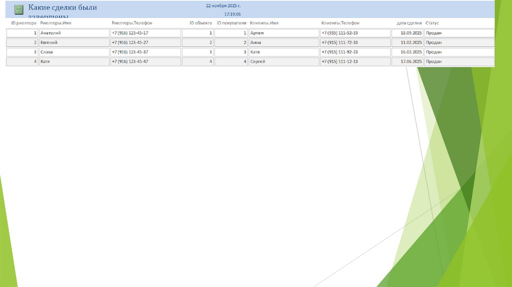 В ходе работы была успешно спроектирована и разработана база данных«Агентство недвижимости», которая позволяет: