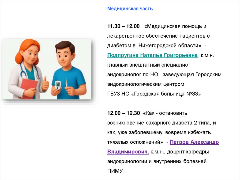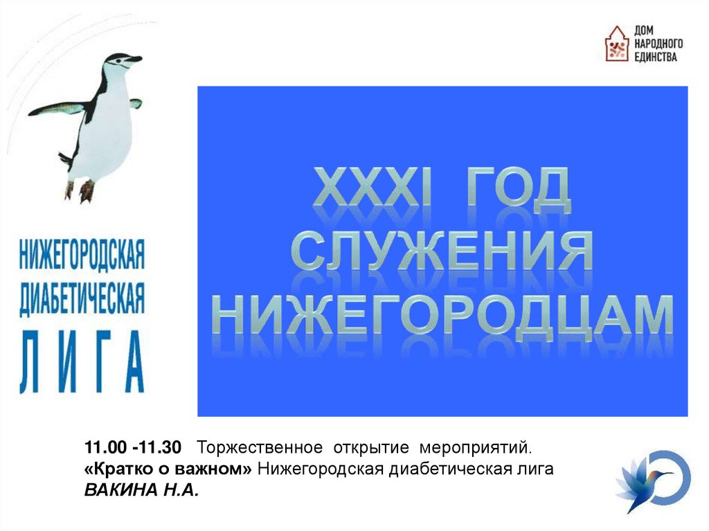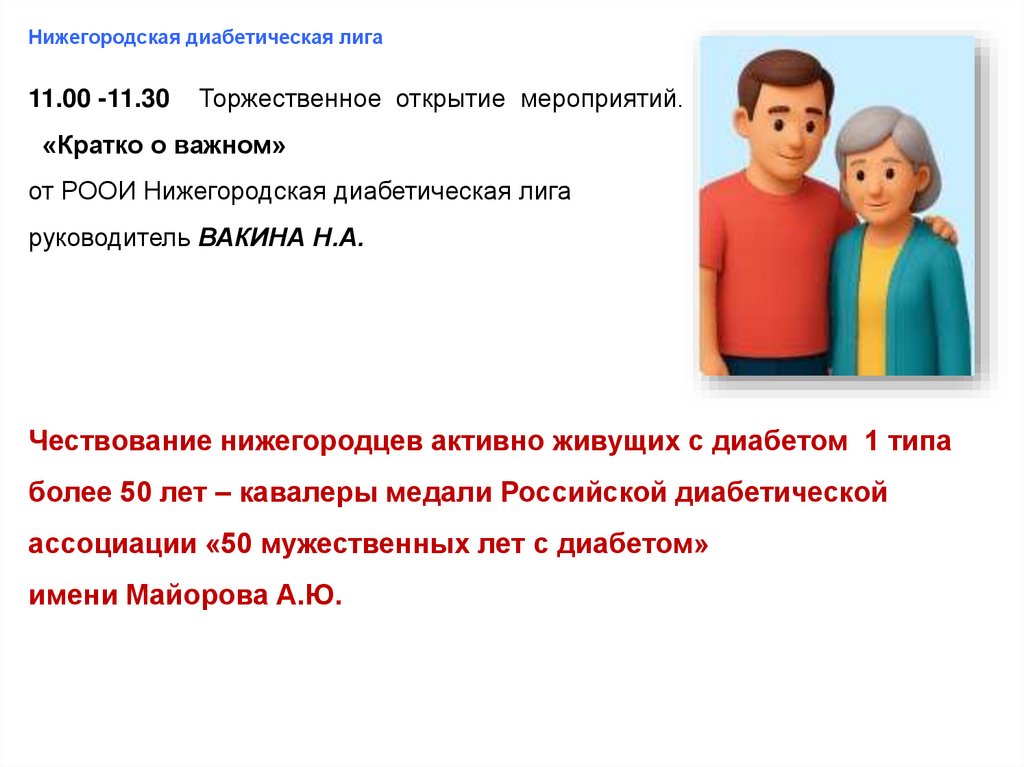 11.00 -11.30 Торжественное открытие мероприятий.«Кратко о важном» Нижегородская диабетическая лига