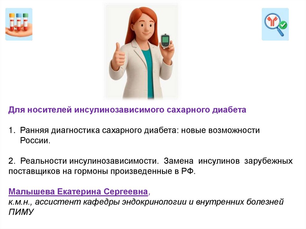 Для носителей инсулинозависимого сахарного диабета1. Ранняя диагностика сахарного диабета: новые возможности