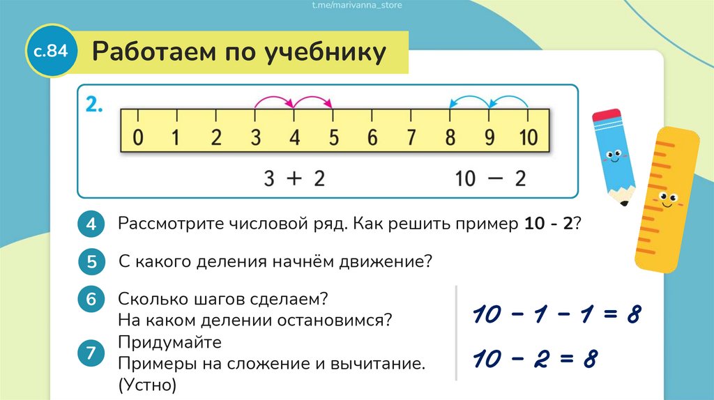 Рассмотрите числовой ряд. Как решить пример 10 - 2?