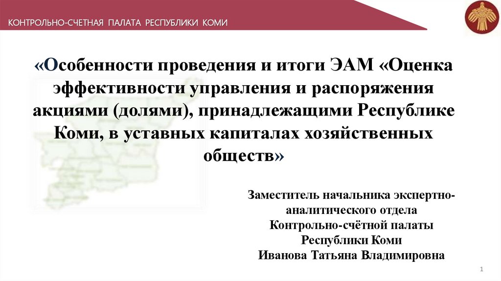 КОНТРОЛЬНО-СЧЕТНАЯ ПАЛАТА РЕСПУБЛИКИ КОМИ«Особенности проведения и итоги ЭАМ «Оценка