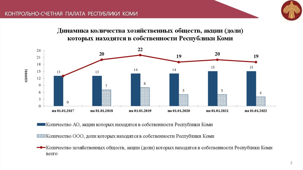КОНТРОЛЬНО-СЧЕТНАЯ ПАЛАТА РЕСПУБЛИКИ КОМИДинамика количества хозяйственных обществ, акции (доли)