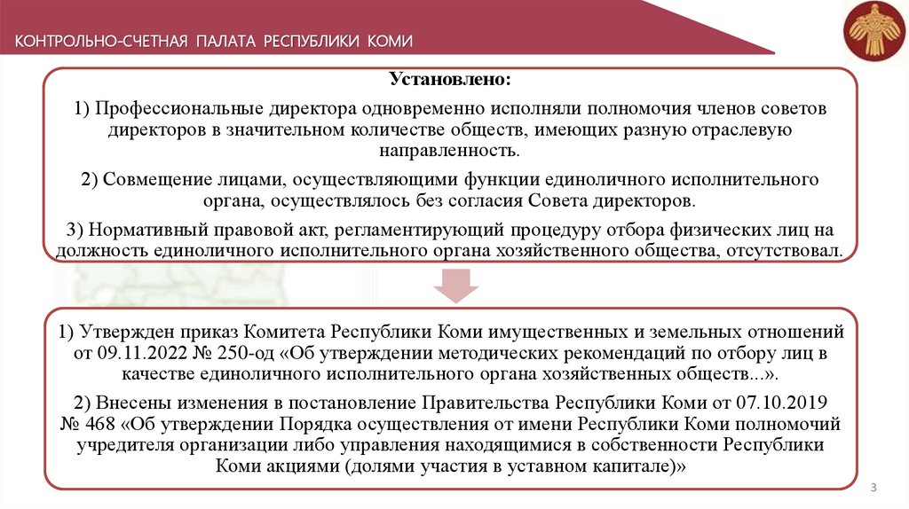 КОНТРОЛЬНО-СЧЕТНАЯ ПАЛАТА РЕСПУБЛИКИ КОМИУстановлено:
