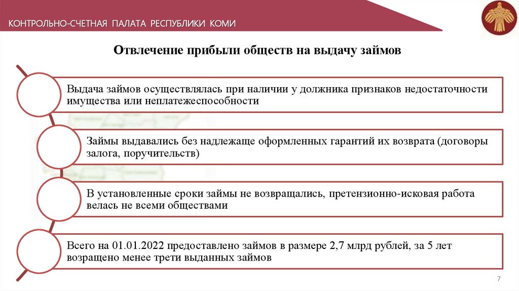 КОНТРОЛЬНО-СЧЕТНАЯ ПАЛАТА РЕСПУБЛИКИ КОМИОтвлечение прибыли обществ на выдачу займов